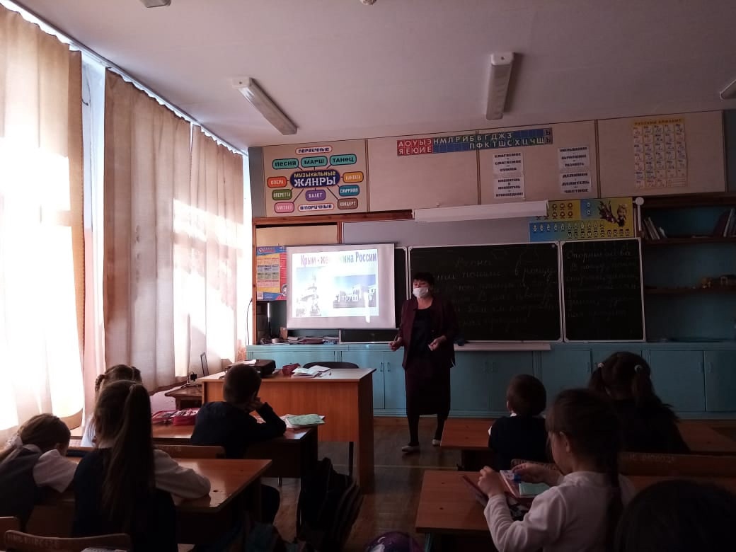 В преддверии дня воссоединения Крыма с нашей великой державой в нашей школе проходят различные мероприятия: уроки и классные часы, посвященные этому историческому событию: «Мы вместе! История воссоединения Крыма с Россией», «Крым – это Россия».
