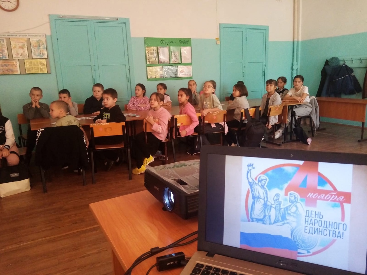 Он был посвящен Дню народного единства. Ребята узнали об истории праздника, о том, что произошло на Руси более 400 лет назад, как единение помогло русскому народу справиться с коварным врагом, о подвиге Кузьмы Минина и Дмитрия Пожарского, узнали о памятнике, который был поставлен в честь них.